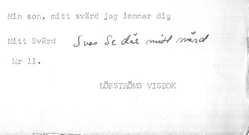 //// Min son, mitt svärd jag lemnar dig //// v v //// Mitt Svärd J v^ St /Y^ao //// /Nr 11. //// * Ml //// 1 //// LÖFSTRÖMS VISBOK //// i //// . • .» . ; i i, ////