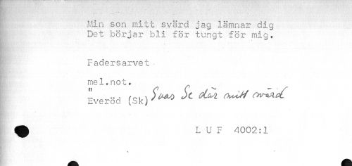 //// I -Min .son mitt svärd jag lämnar dig //// j Det börjar bli för tungt för mig. //// Fadersarvet -mel.not» //// " ... /C1 N iWö JC dm OvuUJ //// Everod (Sk)' . A L U F 4002:1 ////