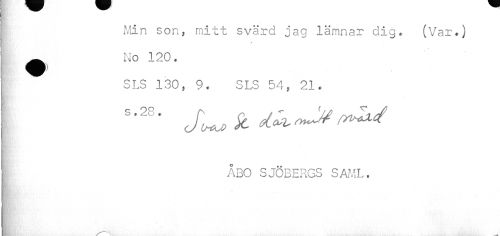 //// ! Min son, mitt svärd jag lämnar dig. (Var.) //// ^ No 120. //// SLS 130, 9. SLS 54, 21. //// ÅBO SJÖBERGS SAML. ////