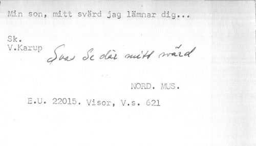 //// Min son, mitt svärd jag lämnar dig... Sk. //// V.Karup „ ^ //// /» //// NORD. MUS. E.U. 22015. Visor, V.s. 621 //// » ////