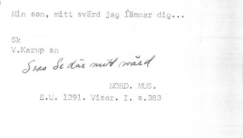 //// Min son, mitt svärd jag lämnar dig»,. Sk //// V.Karup sn //// NORD. MUS. E.U. 1291. Visor. I. s,383 ////