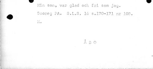 //// Min son, var glad och fri som jag. j 5:oreg PA. S.L.S. 16 s.170-171 nr 108. //// N. //// ÅBO ////