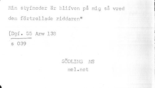 //// Min styfmoder är blifven på mig så vred j //// r //// den förtrollade riddaren" (Dgf. 55 Arw 133 //// s 039 ; //// i //// / I //// l //// SÖDLING MS mel.not //// i i //// k ////