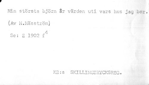 //// Min största björn år värden uti vars hus jag bor» (Av N*Näsström) Se: £ 1902 f4 //// « //// KB:s SKILLINGTRYCKSREG. ////