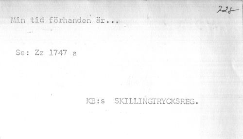 //// i //// Min tid förhande //// n a i"*«.« //// ¦ //// Se: Zz 1747 a //// KB:s SKILLINGTRYCKSREG. ////