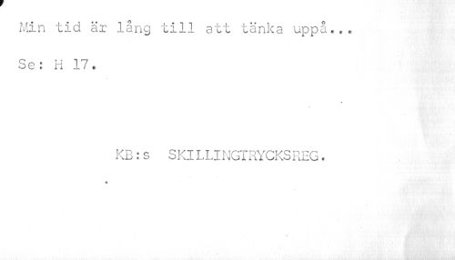 //// Min tid är lång till att tänka uppå*,« Se: H 17* //// KB:s SKILLINGTRYCKSREG. //// ti ////