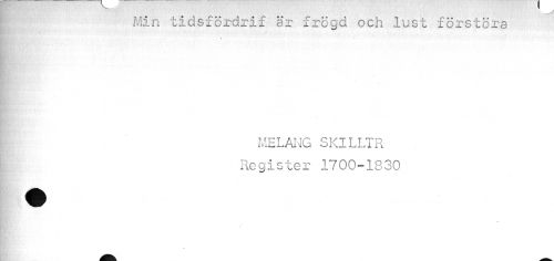 //// | Min tidsfördrif ar frcgd och lust förstöra //// MELANG SKILLTR Register 1700-1830 //// ¦ ; //// V H ////