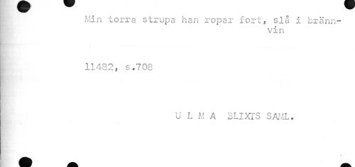 //// j Min torra strupa han ropar fort, slå i bränn- //// ! vin //// i 11482, s.708 //// U L M A BLIXTS SM. ////