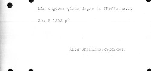 //// Min ungdoms glada dagar är förflutna... Se: E 1853 p3 //// KB:s SKILLINGTRYCKSREG. //// * ////
