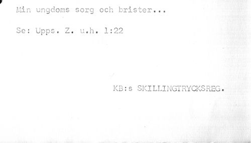 //// Mm ungaoms sorg och brister... //// i //// Se: Upps. Z. u.h. 1:22 //// KB:s SKILLINGTRYCKSREG. //// • • //// , \u. .< .v ..U .1/ '.-A ' / . ' . -- Jm ////