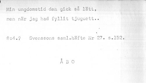//// Min ungdomstid den gick så lätt, men när jag had fyllit tjuguett.. //// a //// \ //// 8:4*? Svenssons saml.häfte Nr 27, s.152. //// # //// ÅBO ////