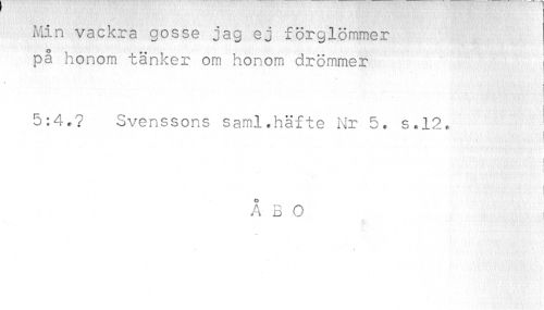 //// Min vackra gosse jag ej förglömmer //// ¦ //// på honom tänker om honom drömmer //// i //// ¦ //// \'"! i //// 5:4,? Svenssons saml.häfte Nr 5. s.12. //// i //// ÅBO //// H» //// t ////