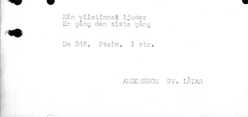 //// t //// Min vilotimmai ljuder En gång den sista gång //// Da 248, Psalm, 1 str. //// ( //// fl //// fff" j.. n f //// ANDERSSON SV. LATAR ////