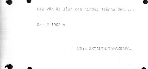 //// ^w //// Min väg är lång och hinder stänga den.t.t //// |B i //// Se: E 1905 x //// » //// KB:s SKILLINGTRYCKSREG. ////