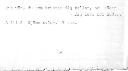 //// Min väny du som kristen dig kallar?, och säger //// • Dig leva för Gud... //// Ä 111:8 Sjömansvisa. 7 str. //// RA //// * < ¦)' .' ' yétmSSS/Kj i //// ¦ ////