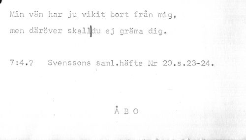 //// Min vän har ju vikit bort från mig, men däröver skalljdu ej gräma dig* //// 7:4*? Svenssons saml.häfte Nr 20.s.23-24. //// > //// ÅBO //// . " -, » . £ i C k ////