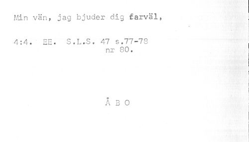 //// Min vän, jag bjuder dig farväl, //// 4:4. EE. S.L.S. 47 s.77-78 //// nr 80. //// t //// I //// » //// C //// ÅBO //// i ////