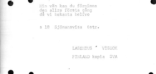 //// w Min vän kan du förnimma //// den allra första gång då vi bekanta belfvo //// s 13 Sjömansvisa 6str. //// LASENIUS ' VISBOK FINLAND kopia SVA ////