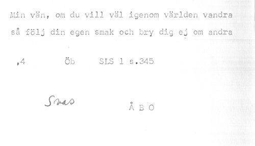 //// Min vän, om du vill väl igenom världen vandra //// så följ din egen smak och bry dig ej om andra //// i //// é //// f 4 Öb SLS 1 s ? 345 //// ^ A B O ////