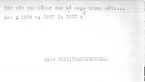 //// Min vän vad båtar oss så noga tiden mäta... //// 3 //// Se: E 1824 z; 1827 i; 1832 q //// r //// 'i' < 1 i //// KB:s SKILLINGTRYCKSREG. //// k //// I ////