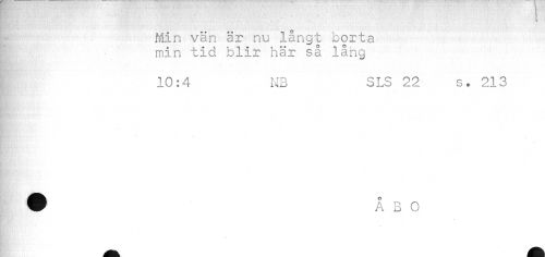 //// O //// Min vän är nu långt borta min tid blir här så lång //// 10:4 NB SLS 22 s* 213 ////