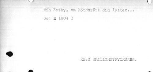 //// 1 Min Zethy» om bördsrätt dig lyster... //// Se: E 1804 d //// \ //// KB:S SKlLLINGTRYCKSREG. ////