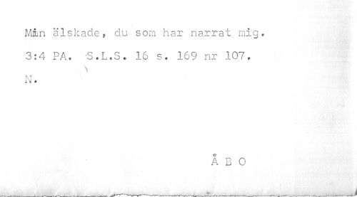 //// 1 //// Min älskade* du som har narrat mig. 3:4 PA. S.L.S. 16 s. 169 nr 107. //// v //// N. //// ÅBO //// ___ ^ ... _____' _ ___J ////