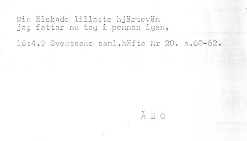 //// Min älskade lillaste hjärtevän jag fattar nu tag i pennan igen, //// 16:4/? Svenssons saml.häfte Nr 20. s.60-62. //// ÅBO //// Jf ////