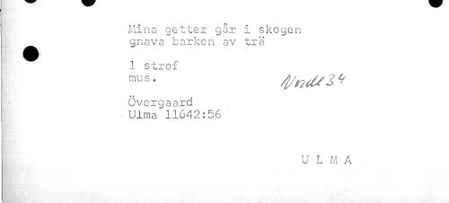 //// I Mina getter går i skogen //// | gnava barken av trä //// t 1 strof //// mus. //// Övergaard //// ¦ Ulma 11642:56 //// i //// y . //// ULMA ////