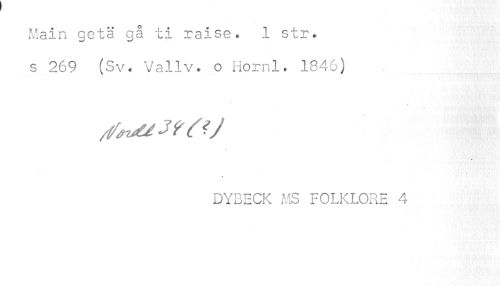 //// Main getä gå ti raise. 1 str. s 269 (Sv. Vallv. o Hornl. 1846) //// v //// * //// DYBECK MS FOLKLORE 4 ////
