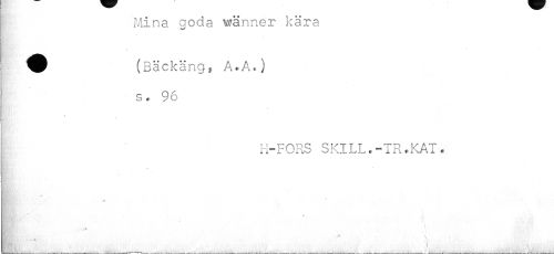 //// Mina goda wänner kära //// (Bäckäng, A.A.) s # 96 //// K-FORS SKILL.-TR.KAT. //// 1 ' //// s //// Sfe^ *....; ////