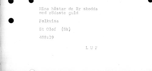 //// T ¦ //// Mina hästar de är skodda med rödaste guld //// Folkvisa | St Olof (Sk) //// 488:19 //// ! LUF ////