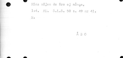 //// i Mina nöjen de äro ej manga, //// 1:4. MU. S.L.S. 50 s. 49 nr 41. //// [ N. //// I; ÅBO //// . //// Bp //// • . ////