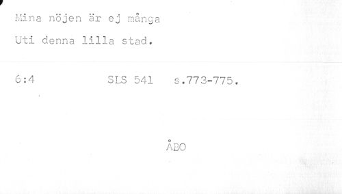 //// Mina nöjen är ej många Uti denna lilla stad. //// 6:4 SLS 541 s.773-775. //// t //// ÅBO ////