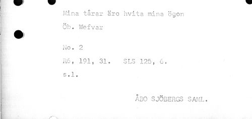 //// I Mina tårar äro hvita mina ögon //// Öb. V/ef var //// I No. 2 //// R6, 191, 31. SLS 125, 6. s. 1. //// ÅBO SJÖBERGS SAML. ////
