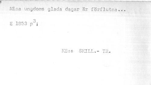 //// Mina ungdoms glada dagar är förflutna... E 1853 p3; //// KB:s SKILL.- TR. //// ii mw ////