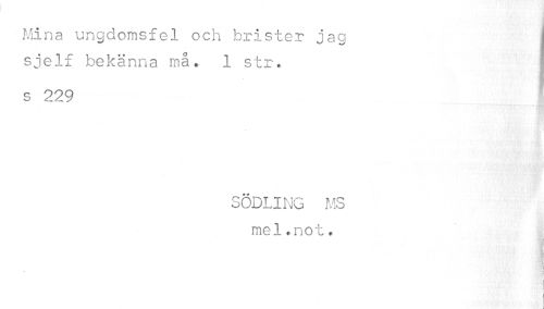 //// Mina ungdomsfel och brister jag j //// sjelf bekänna må» 1 str. ! //// s 229 //// KSfittKMnf&^^^^l //// SÖDLING MS mel. not. //// m //// » //// i ////