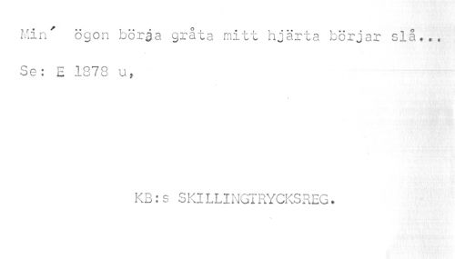 //// Min' ögon böråa gråta mitt hjärta börjar slå... Se: E 1878 u, //// KB:s SKILLINGTRYCKSREG. ////