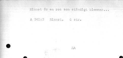 //// j: Minnet är en ros sorn ständigt blommar... //// A 341:3 Minnet. 6 str. //// 1 ® HA //// MÅ ////