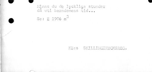 //// | Minns du de lyckliga stunder //// I då uti barndomens tid... //// £ Se: E 1906 m3 //// j //// , / " | KB: s S Kl L LI NGT RY CKS REG * //// . v" ////