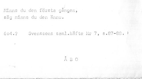 //// Minns du den första gången, säg minns du den ännu. //// 6:4.? Svenssons saml.häfte Nr 7, s.87-88, * //// f //// Å B O //// S ' //// % ////