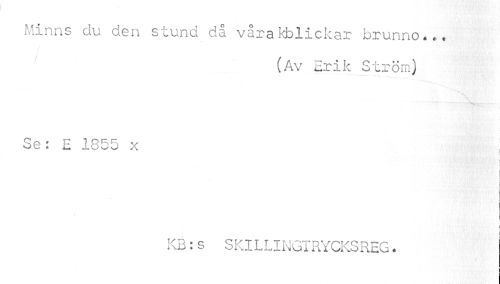//// Minns du den stund då vårakblickar brunno... //// (Av Erik Ström) //// ''« ' I //// Se: E 1855 x //// I //// I //// KB:s SKILLINGTRYCKS REG. //// i ////