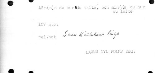 //// Mi n (n) s du hur fcdu talte, och min(n)s du hur //// du löfte //// 107 a,b. //// I mel.not //// /LAGUS NYL FOLKV REG. ////