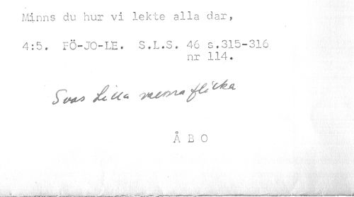 //// Minns du hur vi lekte alla dar, //// « //// i //// 4:5.. FÖ-JO-LE. S.L.S. 46 s.315-316 //// nr 114. //// ÅBO ////