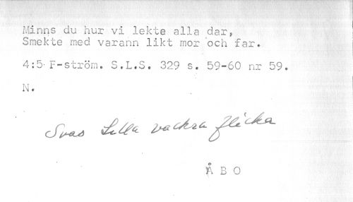 //// Minns du hur vi lekte alla dar, I //// Smekte med varann likt mor och far. //// 4:5- F-Ström» S.L.S. 329 s. 59-60 nr 59. N. //// i , v / a . '. i i i //// i //// cf^ ****** //// ÅBO ////