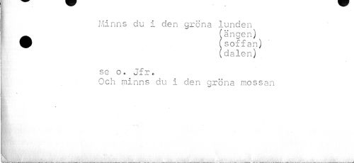 //// I Minns du i den gröna lunden //// Ä (ängen) //// 9 (soffan) //// (dalen) //// i //// | //// t se o.. Jfr» //// Och minns du I den gröna mossan //// BK' N //// * //// : ////