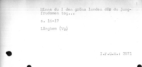 //// Minns - du i den gröna lunden däar du jungfrudomen tog *.. //// s« 16-17 //// Länghem (Vg) //// < //// I.F.G.H.: 2571 ////