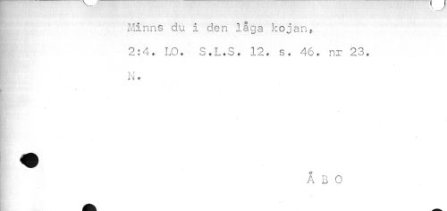 //// i Minns du i den låga kojan,. //// 2:4. LO. S.L.S. 12. s. 46. nr 23. N • //// «i //// ÅBO ////