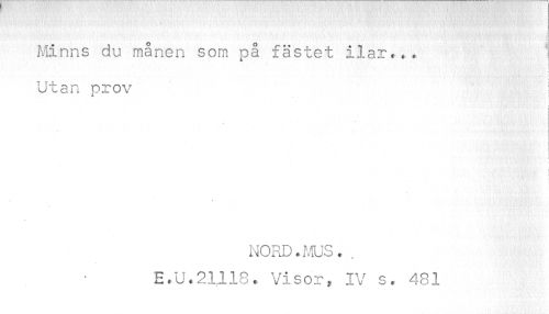 //// % • Minns du månen som på fästet ilar«,. //// i //// Utan prov ! //// * ! //// i //// l //// * « //// NORD.MUS * . E.U.21118. Visor, IV s. 481 ////