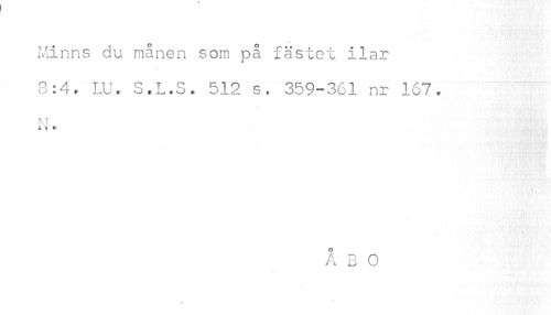 //// Minns du månen som på fästet ilar 8:4, LU. S • L * S • 512 s. 359-361 nr 167. //// KT i\ * //// ÅBO //// > ////